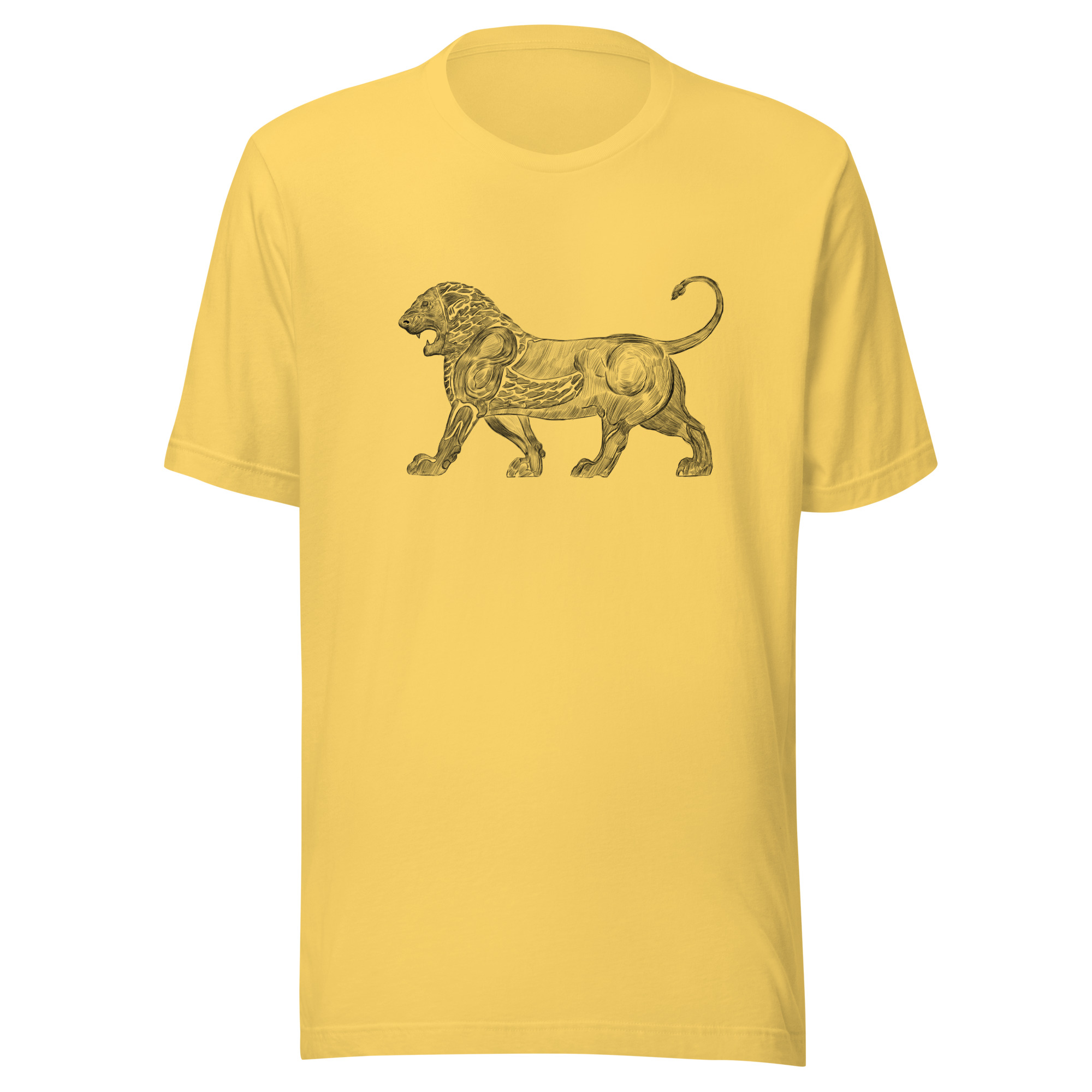 This elegant t-shirt showcases the Achaemenid lion relief, inspired by the grand carvings of Persepolis. The lion has long been a symbol of power and royalty in Persian culture, representing the strength of the Achaemenid Empire. This design merges historical heritage with modern style, making it perfect for those who appreciate Persian history and art. Crafted from premium fabric, it offers comfort and durability, ideal for both casual and statement wear.