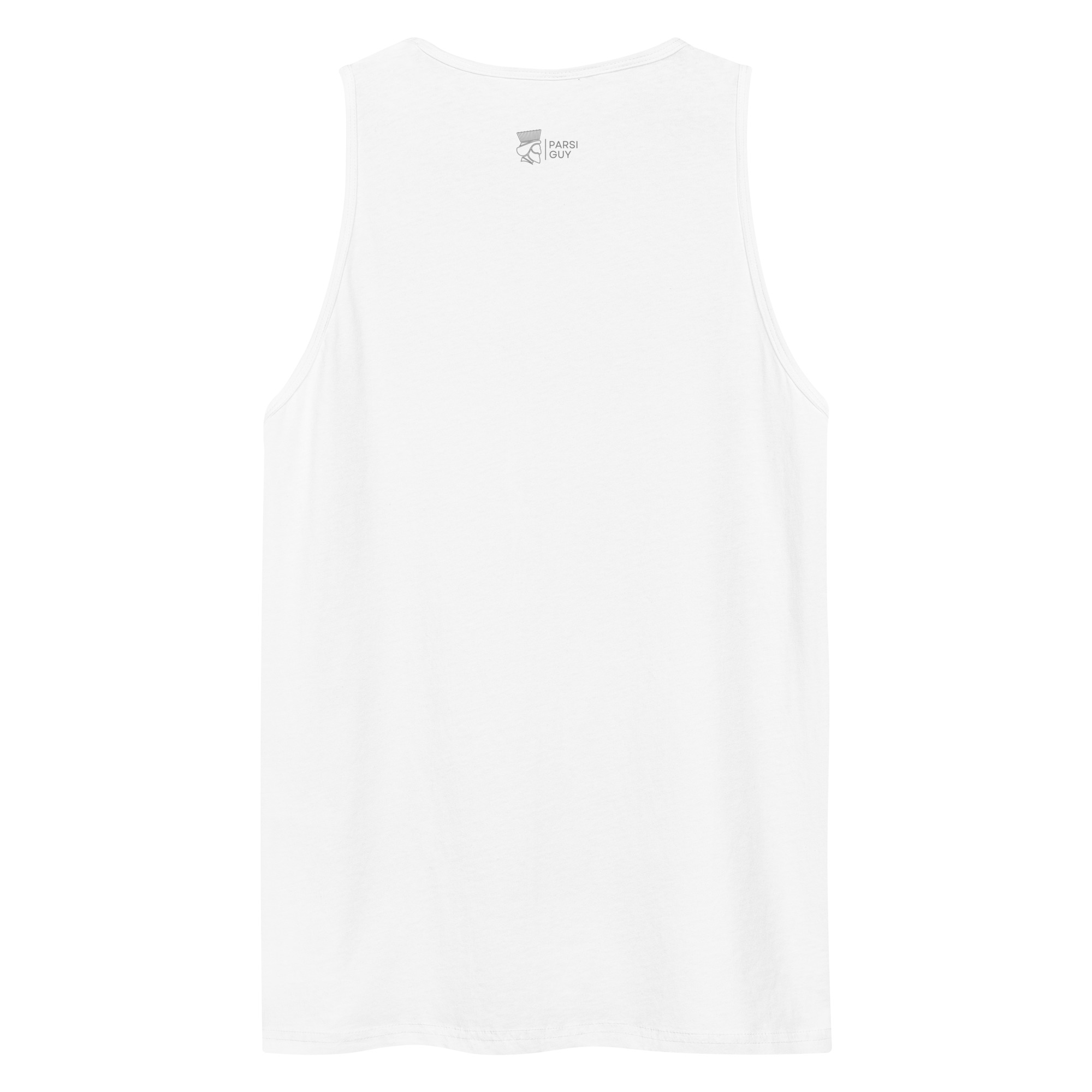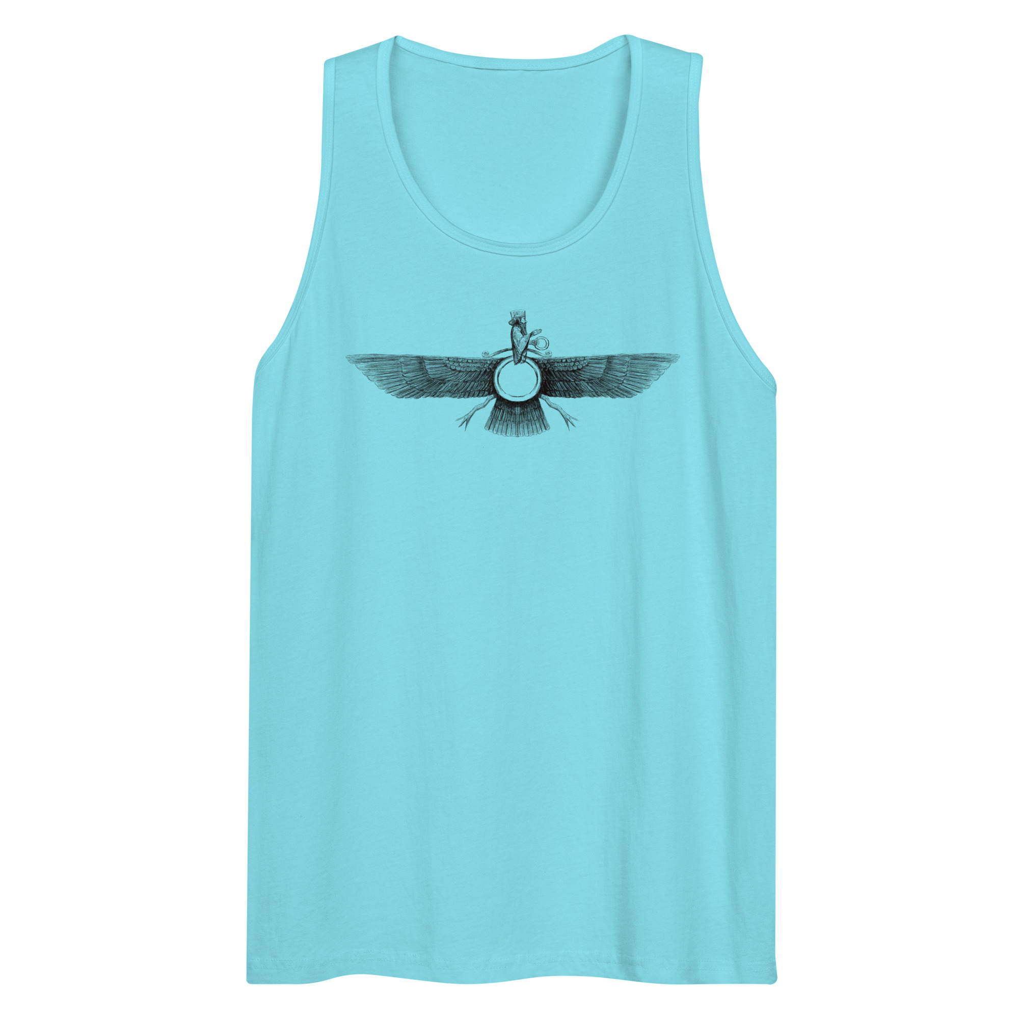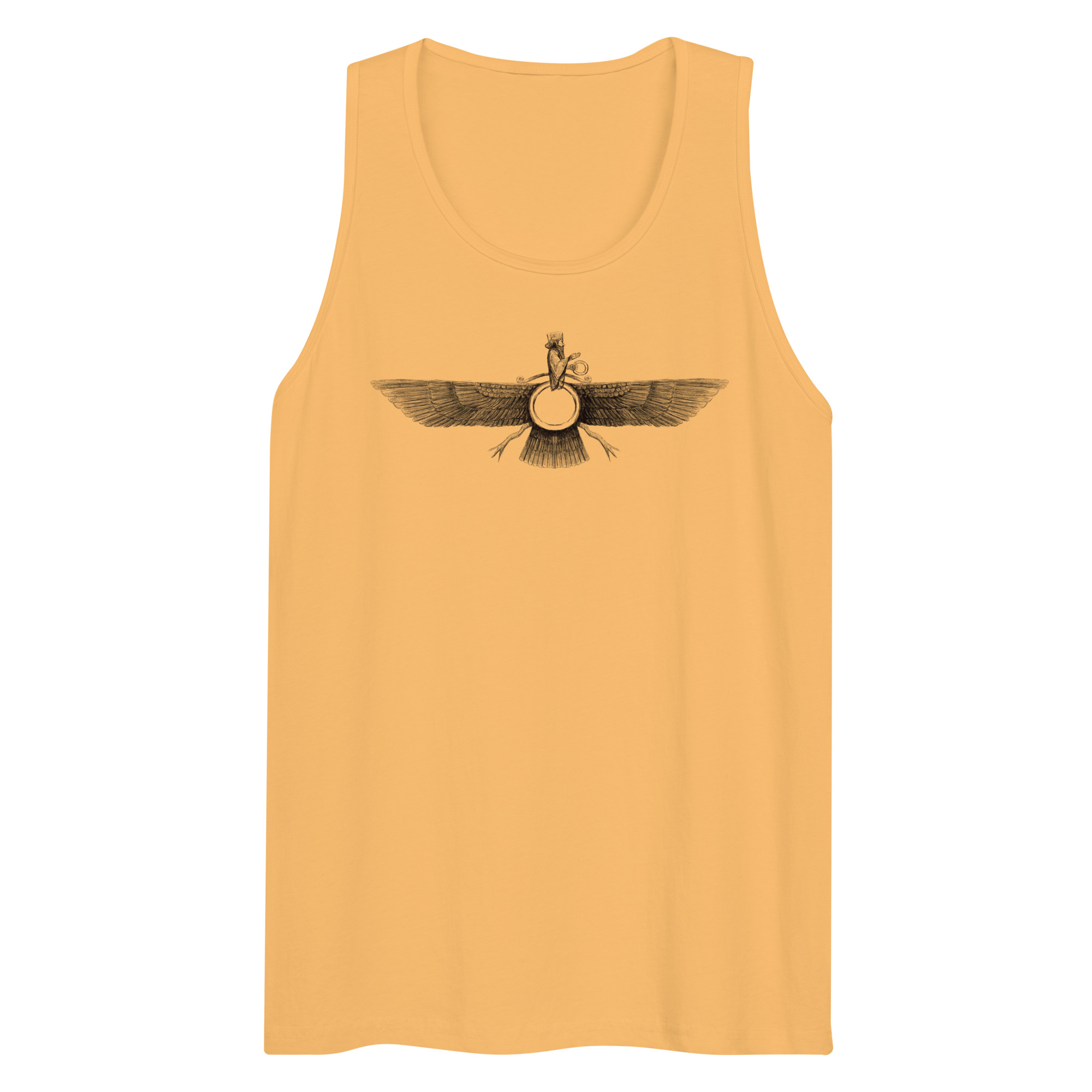 Faravahar tank top inspired by Iranian heritage and closely associated with Zoroastrian philosophy and the values of good thoughts, good words, and good deeds.