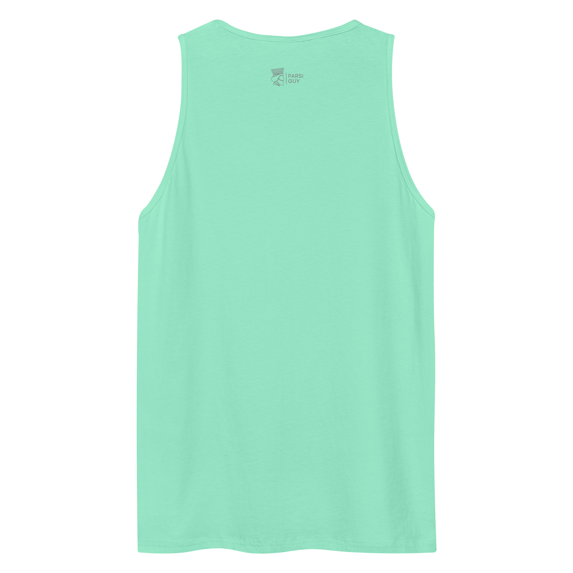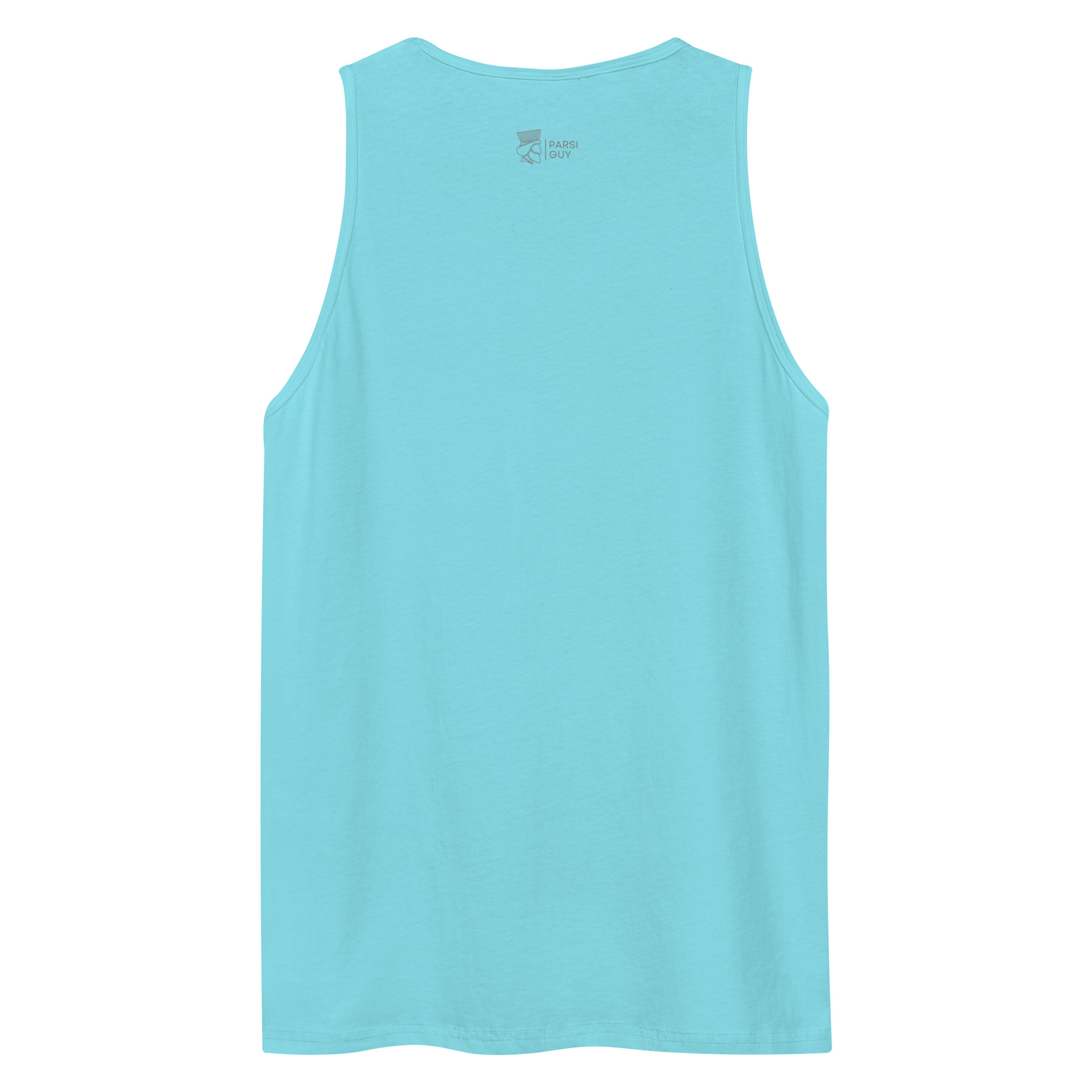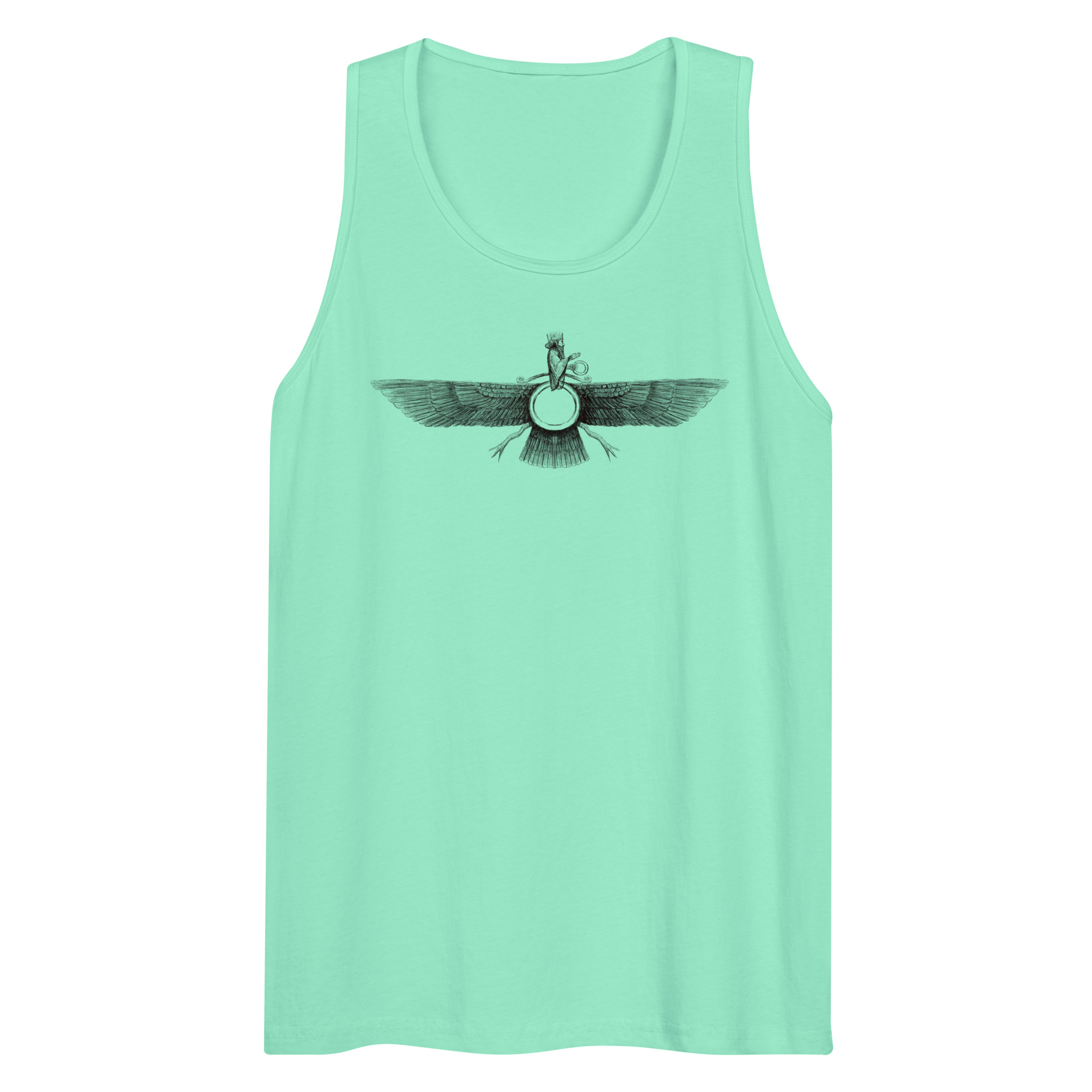 Faravahar tank top inspired by Iranian heritage and closely associated with Zoroastrian philosophy and the values of good thoughts, good words, and good deeds.